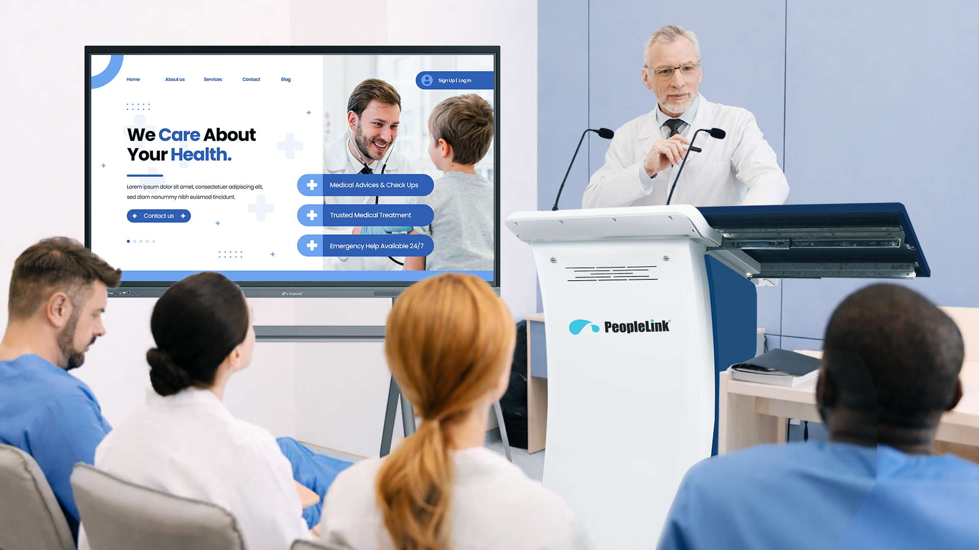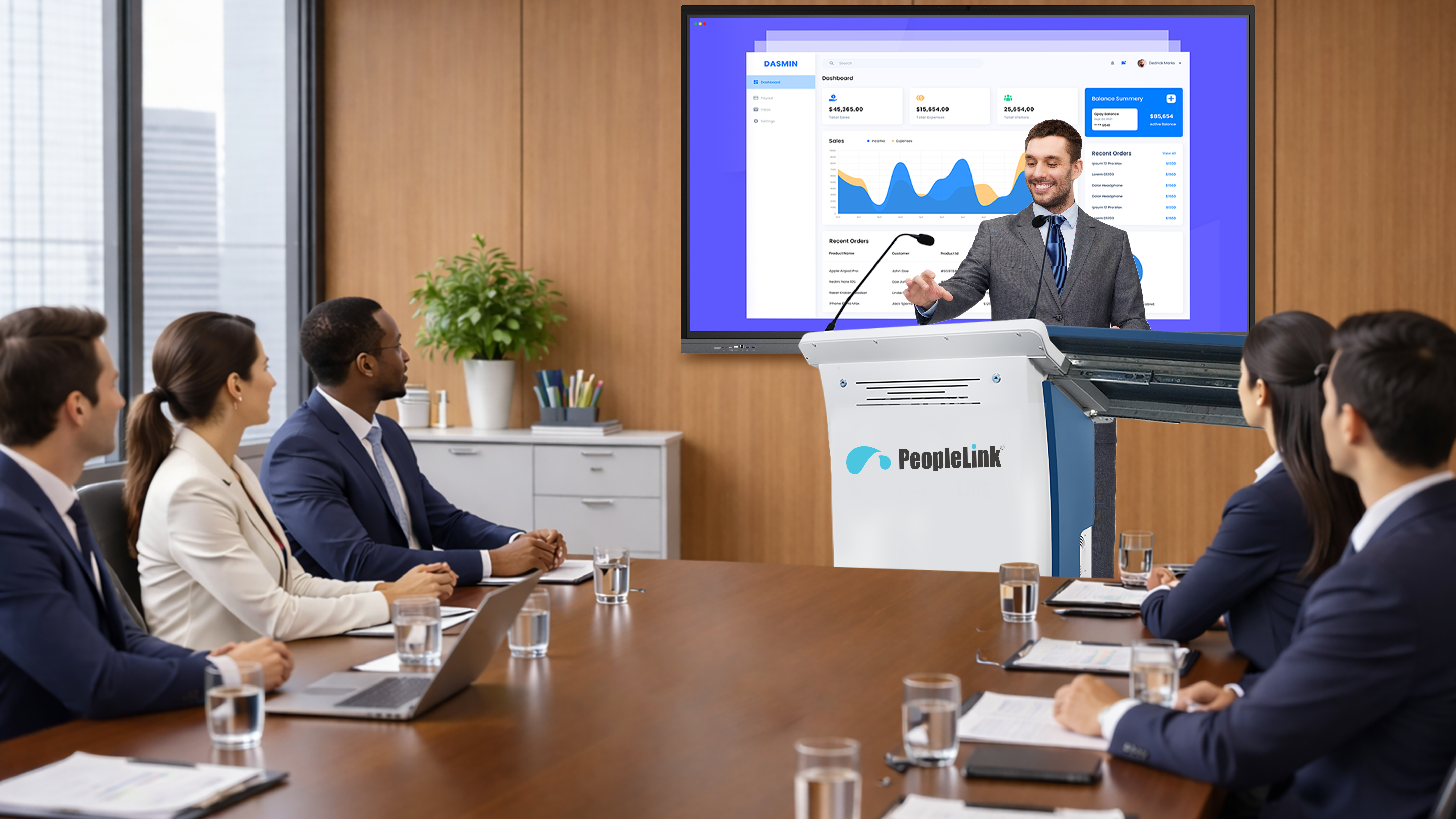 Experience next-level presentations with the PeopleLink Vantage Smart ePodium-combining touchscreen control, integrated AV systems, live streaming, and smart device connectivity in one powerful solution.